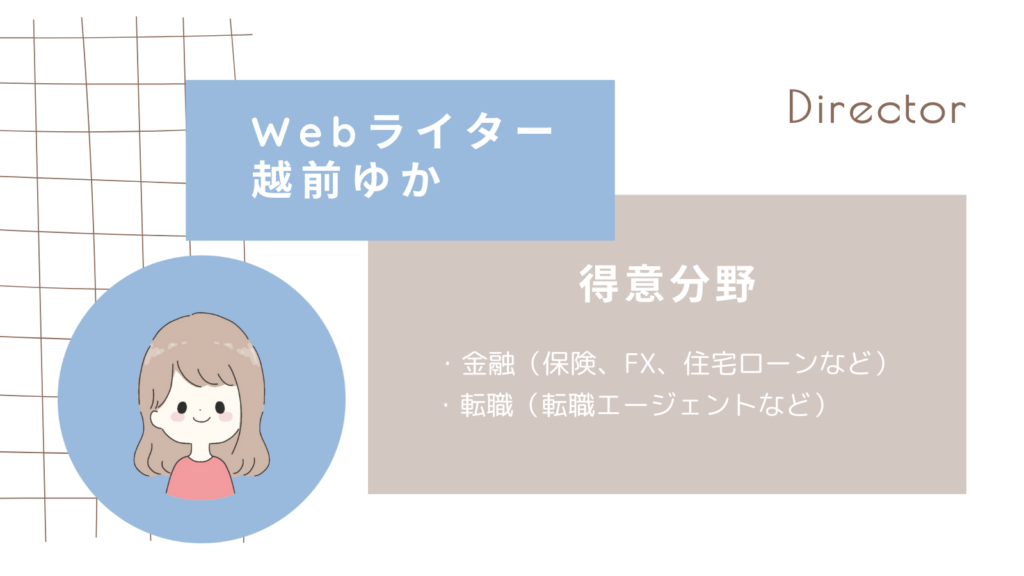 さまざまなジャンルを執筆していますが、保険代理店・転職経験から、特に「金融」「転職」記事を強みとしています。